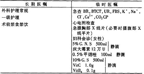 说明:(1)阑尾炎重在早期诊断、早期手术。急性阑尾炎与急性盆腔炎有时难以鉴别。 (2)多为革兰阴性细菌的混合感染,常并有厌氧菌感染。 (3)术后早期防出血,后期注意伤口情况。 (4)切除的阑尾必须送病理学检验。 (5)术后禁食时间以肠道恢复通气后停止。 |