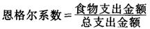 根据恩格尔定律计算的比例数。它由食物支出在消费者总支出中所占的比重来决定,常用下式求得: