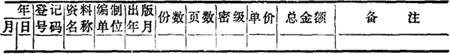 | 释义 | 情报整理 (一)选留登记 情报机构从各种途径搜集来的资料,必须进行鉴别与选留,对资料的内容及其参考价值进行初步评价,有重要参考价值的对口资料优先整理、重点推荐,一般参考价值的资料及时登记,分类纳入检索系统,没有参考价值的舍弃,涉及机密资料要按规定办法登记整理,选留的一般原则是: (1)适合本行业单位生产、科研、设计、教学等工作需要的资料。 (2)资料完整,没有残缺破损。 (3)印刷清晰。 (4)复本资料最多保留两份,其余不必保留。 凡是选留的资料都要进行登记。资料登记有两种形式,一是书本式,二是卡片式,其主要形式是书本式,卡片式用的较少。书本式登记的方法也可分为两种:总括登记和个别登记,总括登记是将资料按批、分类登记,总括登记需要分类,较为复杂费时,实际作用不大,情报资料一般采用个别登记,即按每件资料到达的先后顺序进行流水登记,登记时要填明登记的年月日,资料的登记号码,资料名称,编辑出版单位、出版时间、份数等。如果资料是购买的应注明单价及金额。登记格式如表7-1。 表7 科技情报资料登记表
