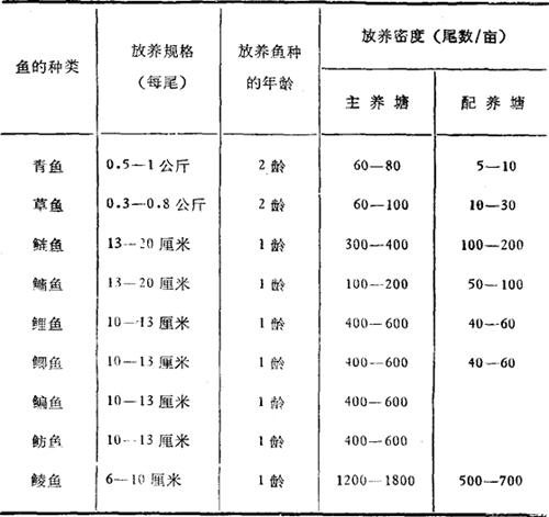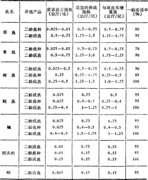 具体放养量可以根据各种鱼的一般增重倍数、成活率和计划产量来估算鱼种放养量。计算放养量时,先算主养鱼,后算配养鱼。