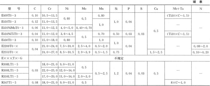 注:FCAW为药芯焊丝电弧焊.GTAW为钨极惰性气体保护焊 焊丝型号举例如下: