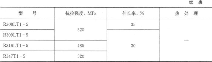 注:①表中单值均为最大值。 ②除表中所列元素外,其他元素(Fe除外)总量不得超过0.50%。 表3.4-3 熔敷金属拉伸性能(GB/T 17853-1999)
