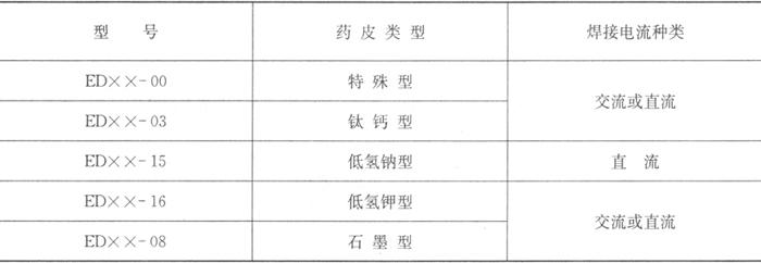 表4.2-2 药皮类型和焊接电流种类(GB/T 984-2001)