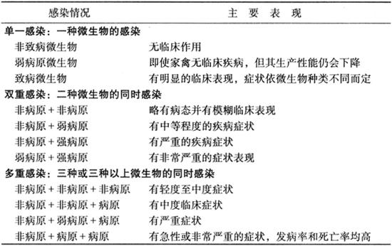 *非病原:非致病微生物;弱病原:弱致病性微生物;病原:主病微生物;强病原:强致病性微生物。 混合感染的诊断、治疗及根除均比较困难,即使分离获得了主要病原,但其他次要的病原体就没那么容易确诊,造成疫情长期存在,经济损失难以估计。 |