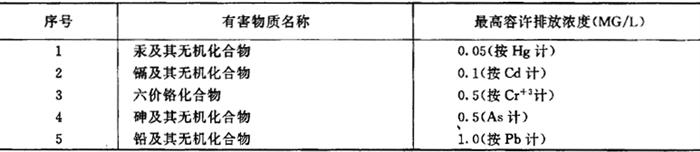 | 释义 | 我国现有的国家标准 1.水质标准 (1)工业“废水”最高容许排放浓度(摘自《GBJ4-73工业“三废”排放试行标准》) 工业“废水”中有害物质最高容许排放浓度,分为两类: 第一类,能在环境或动物体内蓄积,对人体健康产生长远影响的有害物质。含此类有害物质的“废水”,在车间或车间处理设备排出口,应符合表7.2.2-1规定的标准,但不得用稀释方法以代替必要的处理。 表7.2.2-1 工业“废水”最高容许排放浓度