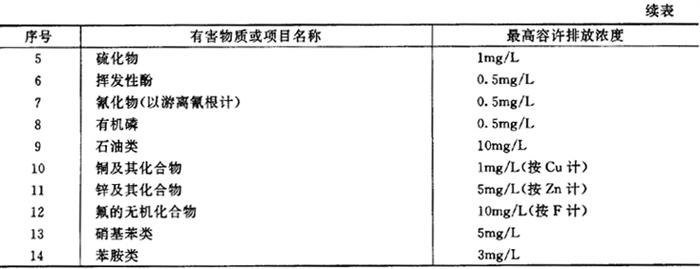 第二类,其长远影响小于第一类的有害物质,在工厂排出口的水质应符合表7.2-2规定。 表7.2.2-2 工业“废水”最高容许排放浓度