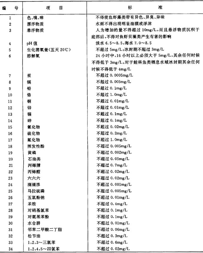 (5)渔业水域水质标准 (表7.2.2-6),摘自《渔业水质标准TJ36-79》(试行)) 表7.2.2-6 渔业水域水质标准