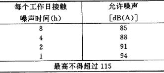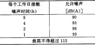 注:①表中未列入的企业,其有害物质排放量可参照本表类似企业。 ②表中所列数据按平原地区,大气为中性状态。点源连续排放制订。间断排放者,若每天多次排放,其排放量按表中规定;若每天排放一次而又小于一小时者,则二氧化硫、烟尘及生产性粉尘、二硫化碳、氟化物、氯、氯化氢、一氧化碳等七类物质的排放量可为表中所规定量的三倍。 ③系指局部通风除尘后所容许的排放浓度。 第一类指:含10%以上的游离二氧化硅或石棉的粉尘、玻璃棉和矿渣粉尘、铝化物粉尘等。 第二类指:含10%以下的游离二氧化硅的煤尘及其它粉尘。 3.工业噪声标准 根据《工业企业噪声卫生标准》(试行草案)[(79)卫工字第1261号,(79)劳总护字第51号]: (1)工业企业的生产车间或作业场所的工作地点的噪声标准为85dB(A)。现有工业企业经过努力暂时达不到标准时,可适当放宽,但不得超过90dB(A)。 (2)对每天接触噪声不到8小时的工种,根据企业种类和条件,噪声标准可按表7.2.2-13、7.2.2-14相应放宽。 表7.2.2-13 新建、扩建、改建企业允许噪声标准