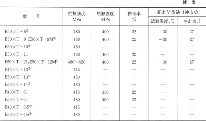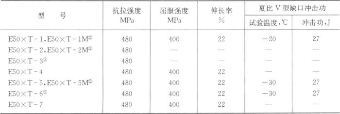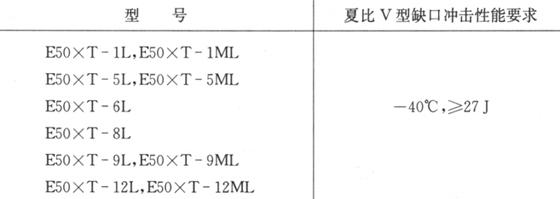 注:①表中所列单值均为最小值。 ②型号带有字母“L”的焊丝,其熔敷金属冲击性能应满足以下要求: