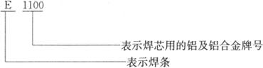 焊条型号的编制方法如下:字母“E”表示焊条,E后面的数字表示焊芯用铝及铝合金牌号。