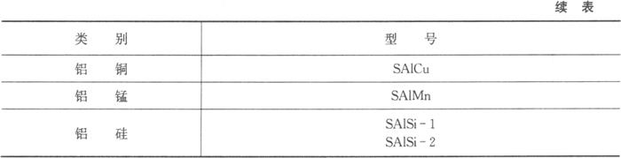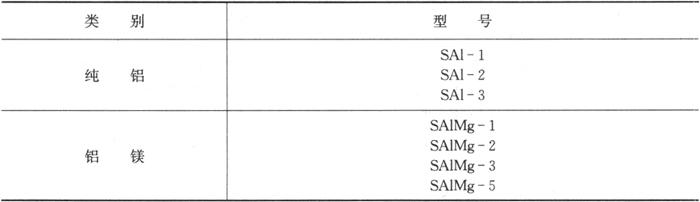 表9.3-1 铝及铝合金焊丝的分类和型号(GB/T 10858-1989)