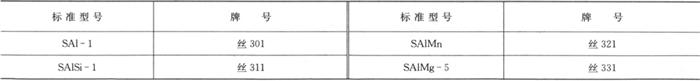 我国目前应用的铝及铝合金焊丝牌号(样品型号)为丝301、丝311、丝321和丝331,它们与标准型号的对照见表9.3-3