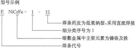 | 释义 | 我国镍及镍合金焊条标准概述 我国国家标准GB/T 13814-1992规定了镍及镍合金焊条的型号、技术要求、试验方法等内容。焊条型号根据熔敷金属化学成分和药皮类型划分,其表示方法如下: