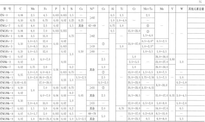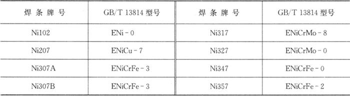 表5.2-4列出我国常用镍和镍合金焊条牌号与GB/T 13814型号的对照。 表5.2-4 我国常用镍和镍合金焊条牌号与GB/T 13814型号对照