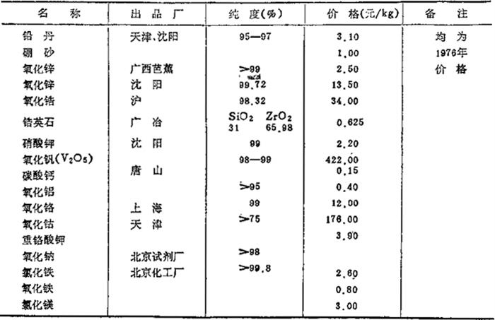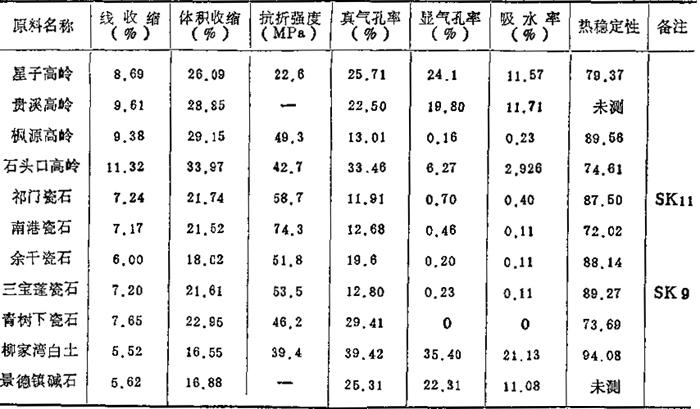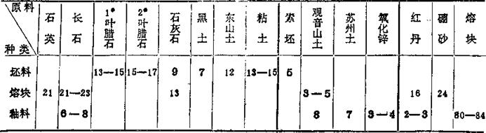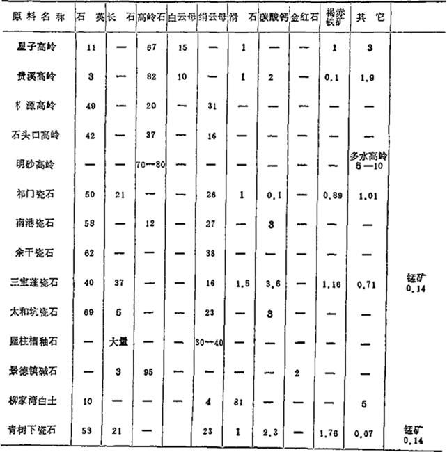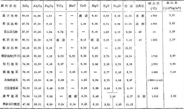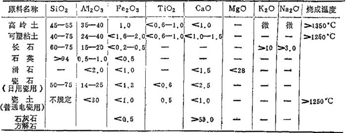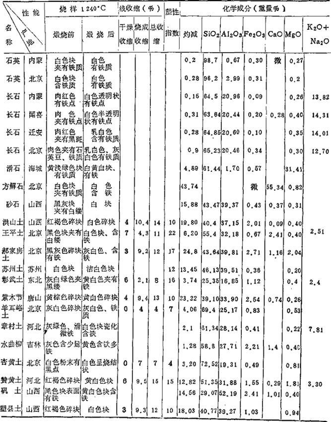 | 字词 | 我国陶瓷原料与配方的原始数据 |