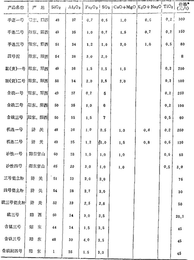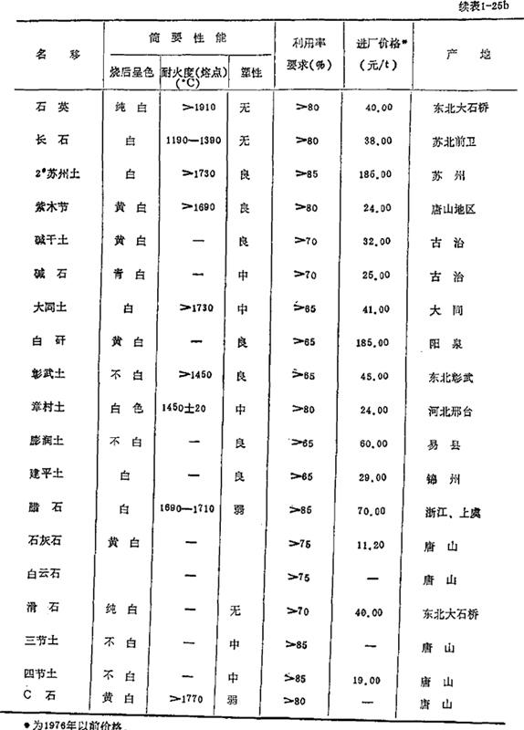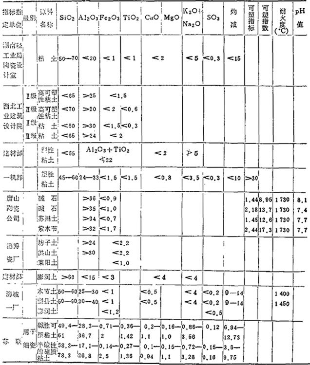 *为1978年以前的价格。 表1-6 对粘土的质量要求 (重量%)