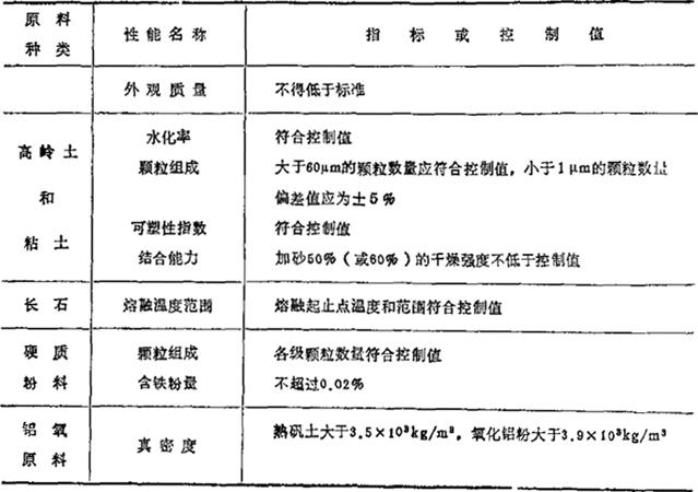 (摘自TB/DQ7079-83) (4)原料的物理性能指标及偏差,应符合表1-13的规定。 表1-13 原料的物理性能
