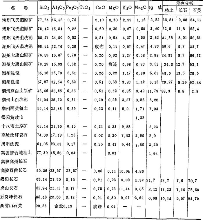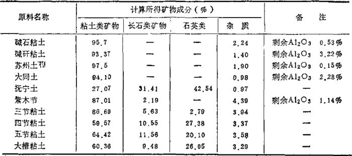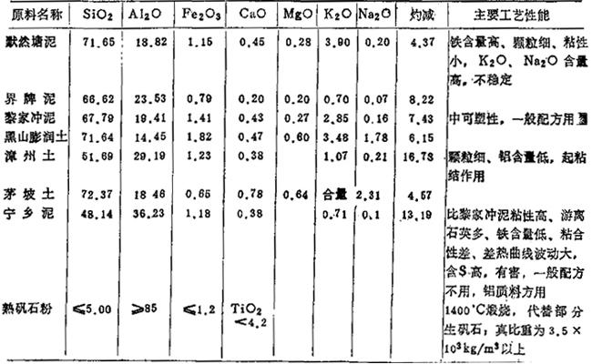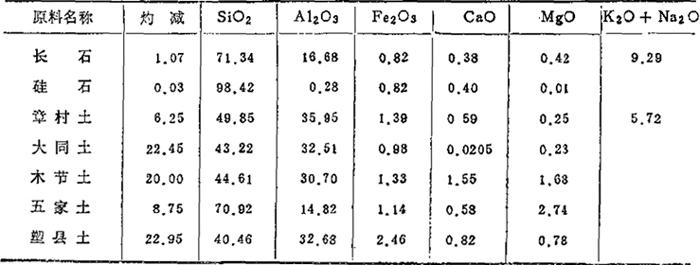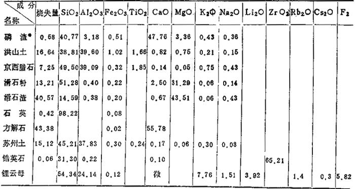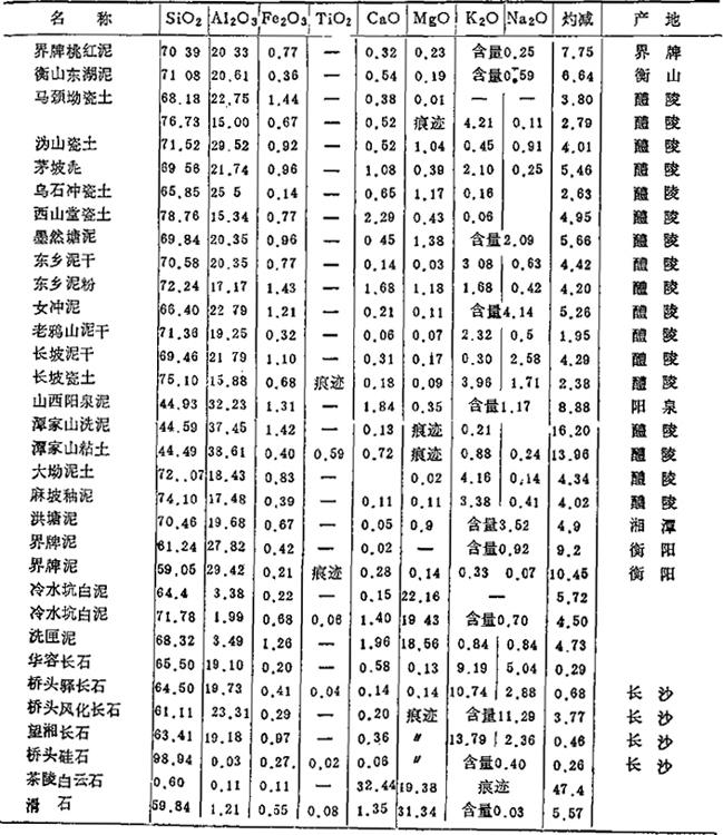 2.湖南地区(长沙、醴陵市瓷厂用):参见表1-18和表1-19所示。 表1-18 原料的化学成分 (重量%)