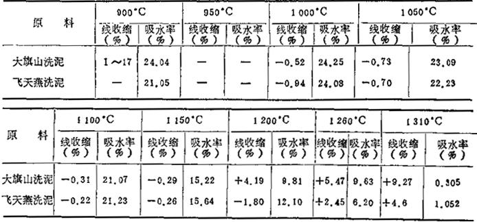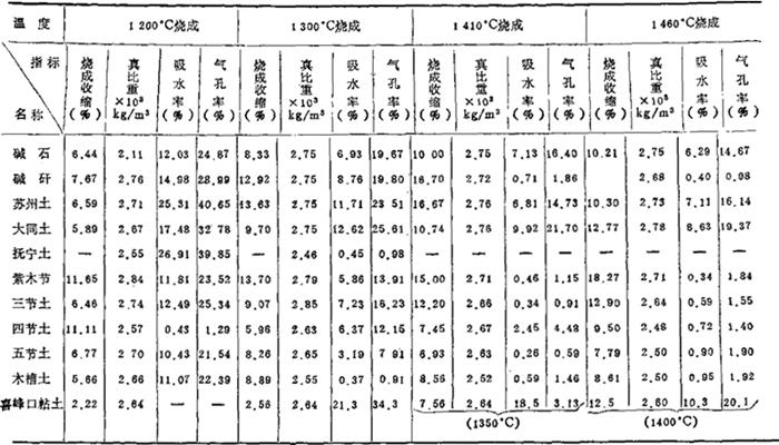 表1-17 原料的烧成性能