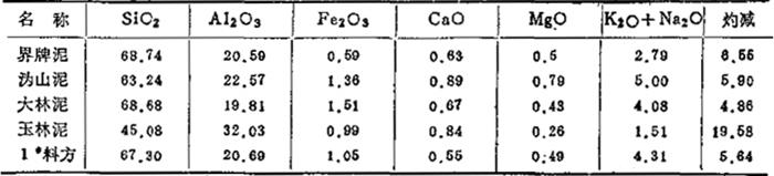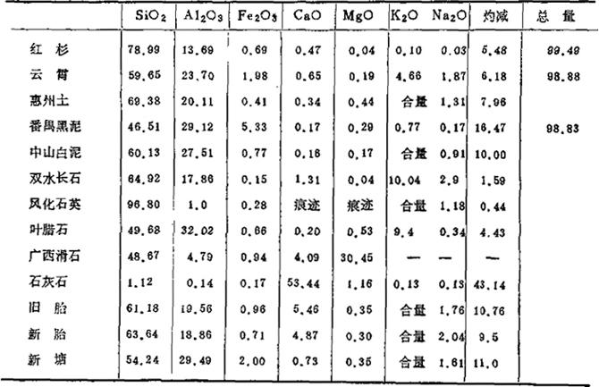 6.厂东佛山地区:参见表1-31和表1-32。 表1-31 石湾某陶瓷厂原料化学成分 (重量%)