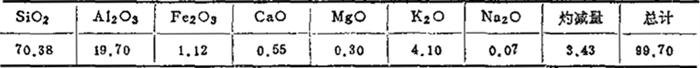 ④可塑性能:指标3.60,相应含水率21.78%(湿基)。 ⑤干燥性能:线收缩率8.87%,结合性抗折强度1.47MPa。 ⑥烧成性能:线收缩率6.7%,总线收缩率14.82%。 (4)福建漳州土 ①产地:福建漳州。 ②外观:煅烧前,黑色、微红黑色泥块、有滑腻感;煅烧后,淡黄色、未烧结、允许有轻微铁质斑点。 ③粘土原料性能 a.颗粒组成 大于63μm颗粒小于10%;小于1μm颗粒大于40%。 b.可塑性指数 不小于10。 c.结合性 不低于2.94MPa(加砂50%)。 (5)茅波泥 ①产地:湖南醴陵。 ②性能:水化率不小于14%。 (6)宁乡泥 ①产地:宁乡。 ②外观:煅烧前,灰白、灰色块料,允许少量黄色锈层;煅烧后,米黄色、未烧结,无明显铁点。 ③粘土原料性能 a.水化率 大于30%。 b.颗粒组成 大于63μm颗粒小于60%,小于1μm颗粒大于40% c.可塑性指标 小于15。 d.结合性 不小于0.68MPa(加砂50%)。 (7)平江长石 ①产地:期南平江。 ②外观:煅烧前,白色粉未;煅烧后,呈乳白色透明熔块,允许有轻微斑点。 ③颗粒度:120目/时筛筛余不大于0.5%。 ④铁粉含量:不超过0.02%。 ⑤熔融温度:1170-1530℃。 ⑥化学成分(如右表,重量%)