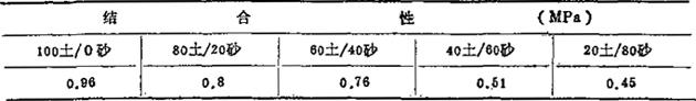 表1-23 喜峰口粘土结合性能