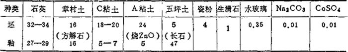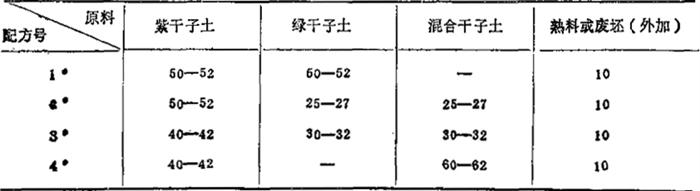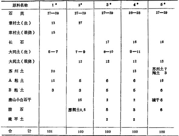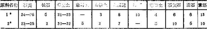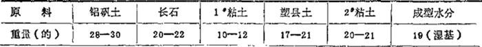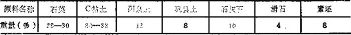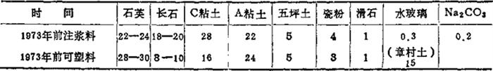 表1-50 70年代生产配方(卫生瓷) (重量%)