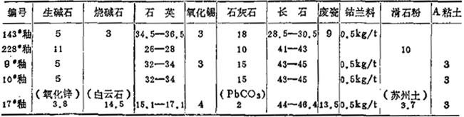 表1-47 该厂釉料配方化学成分汇总表 (重量%)