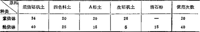(10)厘钵配方(表1-62) 表1-62 釉面砖用匣钵配方 (重量%)