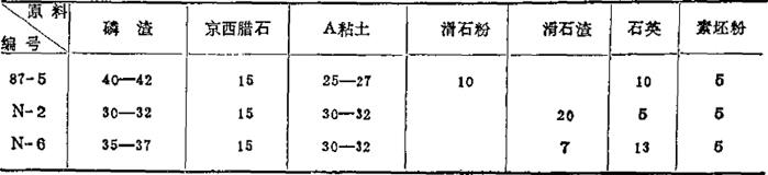 磷渣的主要化合物系CaSiO3. 表1-64 磷渣釉面砖坯料配方 (重量%)