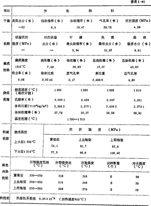 (摘自JB/DQ7079-83) 表1-78 釉料的物理性能