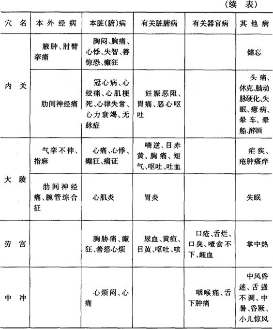 2.穴位主治及其分类 见表3-31。
