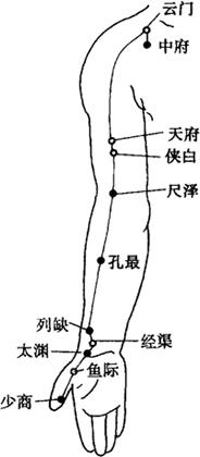 | 释义 | 手太阴肺经穴 本经经穴分布在胸部的外上方,上肢的掌面桡侧和手掌及拇指的桡侧。起于中府,止于少商。见图3-3。