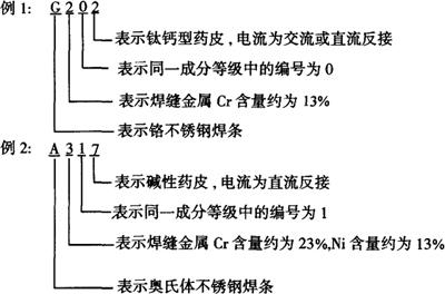 ②最前面的英文字母G表示铬不锈钢焊条,A表示奥氏体不锈钢焊条。