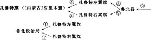 位于东经119°14′~125°58′、北纬43°49′~45°36′之间。 ①1912年称扎鲁特左翼旗、扎鲁特右翼旗;1924年改设鲁北设治局。②鲁北设治局改为鲁北县。③1931年撤销鲁北县,恢复扎鲁特左翼旗、扎鲁特右翼旗。④1935年扎鲁特左翼旗、扎鲁特右翼旗合并,成立扎鲁特旗。 民国初年隶热河特别区。1928年隶热河省。1932年隶伪满兴安西省。1949年5月隶内蒙古自治区。1969年隶吉林省。1979年复隶内蒙古自治区。 扎赉特旗 见46页“扎赉特旗”。 扎鲁特旗 见46页“扎鲁特旗”。 扎鲁特左翼旗 见46页“扎鲁特旗”。 扎鲁特右翼旗 见46页“扎鲁特旗”。 扎萨克旗 见162页“东胜市”、258页“伊金霍洛旗”。 |