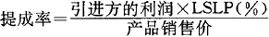 在该公式中,提成的基础为产品销售价,因此该公式的提成率为技术产品销售价与提成费的比率。在实践中,也可用产品的产量、利润作为提成的基础。提成费即许可方得到的技术转让费,也就是技术的价格。如果将该公式带入LSLP的公式,则为: