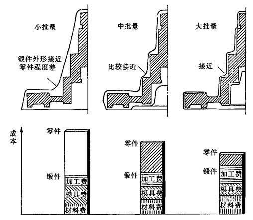 图8-52 成本、批量与锻件接近程度关系示意图 |