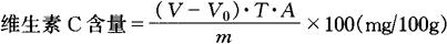 式中 V——滴定样液时消耗染料溶液的体积,mL V0——滴定空白时消耗染料溶液的体积,mL T——2,6-二氯靛酚钠染料滴定度,mg/mL A——稀释倍数 m——样品质量g 注:本方法适用于水果、蔬菜及其加工制品中还原型抗坏血酸的测定(不含二价铁、二价锡、一价铜、二氧化硫,亚硫酸盐或硫代硫酸盐),不适用于深色样品。 |