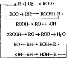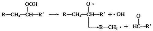 氧化过程中,随着在聚合物链上过氧化物和其它含氧基团的形成,将发生大分子链的断裂: