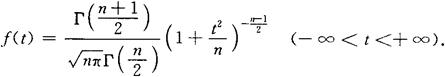 则称T所服从的分布为自由度是n的t分布.记为T~t(n).它的概率密度函数为