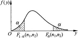 P{F>Fα(n1,n2)}=α,