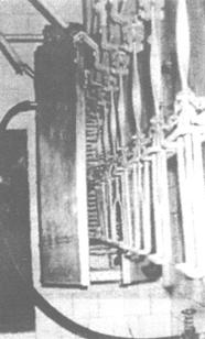 挂拍清洗机主要由不锈钢的机架、驱动电机、喷水管控制板、带有拍打刷的清洗器等组成,结构如图3-2-37所示。当脱羽后的家禽(鸡、鸭等)由传送链传送进入清洗机后,启动电机,使清洗器转动,然后开启喷水管。在水喷淋和拍打刷洗刷的共同作用下,洗掉家禽胴体表面的血污、附毛及其它污物。同时,机器内壁从上而下的水流不断地对内壁进行清洗,将粘附在器壁上的污物及时冲刷掉,最大限度地降低了细菌繁殖的几率。