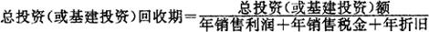 式中:年净效益=年产品销售收入+年外部效益-年经营成本-年折旧费-年技术转让费-年外部费用。 运用该指标的评价准则是:若项目的投资净效益率大于社会折现率(国家计委规定为10%),则该项目初步确定是可以考虑的,且投资净效益率越大越好。但是否一定可行,还要作进一步的动态分析。 (2)投资回收期 投资回收期是指项目建成投产后,按正常年度包括年销售利润、年销售税金和年折旧额在内的现金回收额,来收回总投资或基本建设投资所需的时间。其计算公式为:
