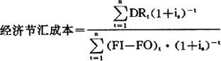 式中:DRt——项目第t年为出口产品所投入的包括投资、原材料、人工及其他国内资源价值; is——社会折现率; n——项目经济寿命期(即项目计算期)。 显然,该指标越小,表明经济换汇成本越低、出口效益越好,为国家创汇能力越大。 (3)经济节汇成本 经济节汇成本是指项目计算期内生产替代进口产品所投入的国内资源的现值与生产替代进口产品的经济外汇净现值之比,即节约1美元外汇所需要的人民币金额。其计算公式为: