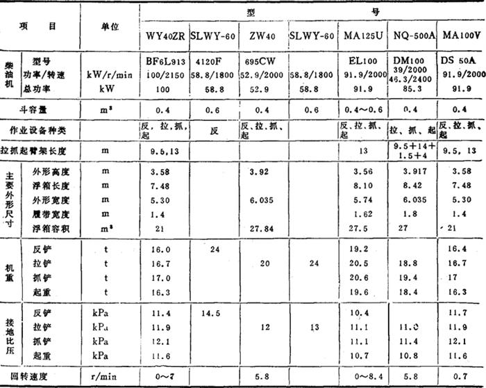 图2-8-55 沼泽挖掘机 表2-8-56 部分沼泽地挖掘机性能