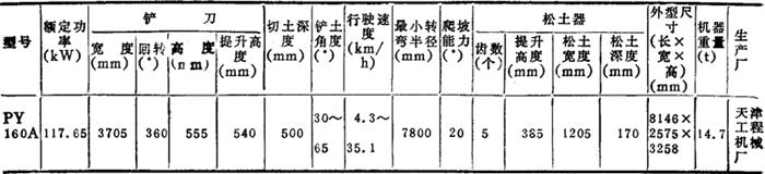 (三)平地机 盐场修滩、改滩中有大量土方平整工作。在平整坨地和部分新建结晶池等时,若土质较硬,可使用一般平地机,如自行式液压平地机,性能见表2-8-58。但多数情况下是土面较渲软的滩池,为提高单产,池面水平度要求又较高,采用一般平地机无法达到。目前已安排试制激光平地机,用激光校准,平整误差为在半径250m范围内,平整度±3cm,在半径100m范围内平整度±1cm。 表2-8-58PY160A型自行式液压平地机