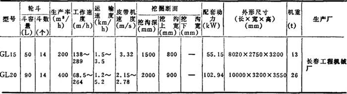 (四)纵向轮斗挖沟机 性能见表2-8-59。 表2-8-59 纵向轮斗挖沟机性能