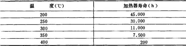 表4-1-19 电感应加热器的寿命