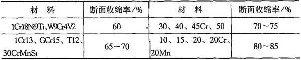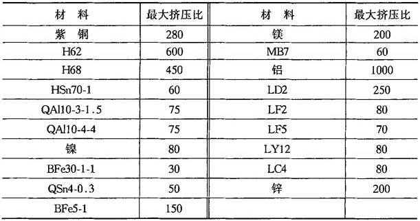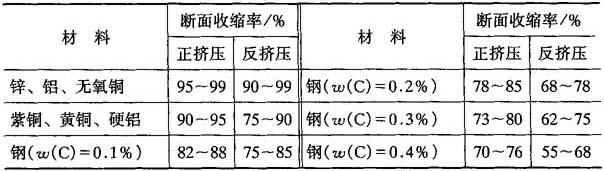 表8-3 温热正挤压时许用变形程度