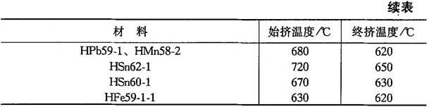 8.1.1.3 挤压温度的选择 挤压生产中温度对挤压变形的影响甚为重要.一般而言,温度越高,单位变形抗力越低,材料的塑性指标上升,但其氧化也越严重,从而影响产品的表面质量、模具寿命以及产品的尺寸精度.因此,在挤压中应选择好挤压温度. 1.热挤压时变形温度的选择 一些常见钢材及铜合金的热挤压温度见表8-4. 表8-4 常用钢料和铜合金的热挤压温度